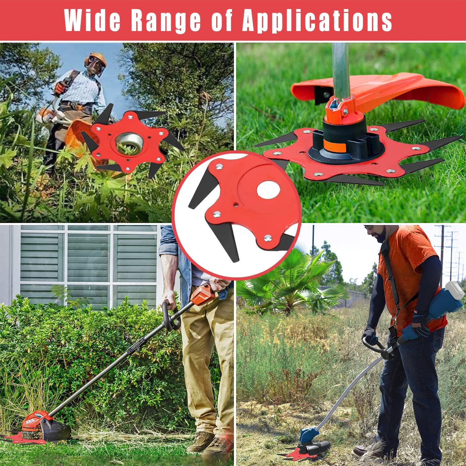 HIGH QUALITY-Blades are constructed from high-grade steel alloy for ultra hardness, sharpness and extra durability. Sharp blades meet your mowing needs, suitable for lawns, gardens, clearing bushes, and eliminating weeds.